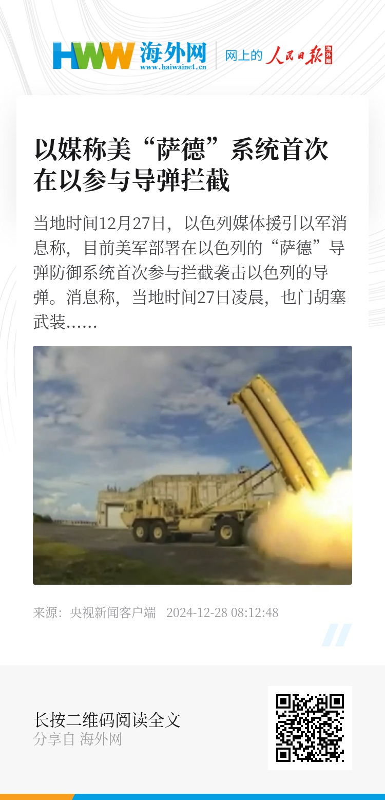 1、在文章開頭部分,可以增加一些關(guān)于薩德系統(tǒng)的簡要介紹,以便讀者更好地理解文章后續(xù)內(nèi)容。